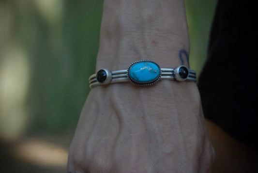 Turquoise and onyx stack bangle