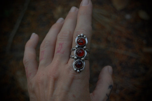 Sold outTriple Red Amber Ring SZ- 8