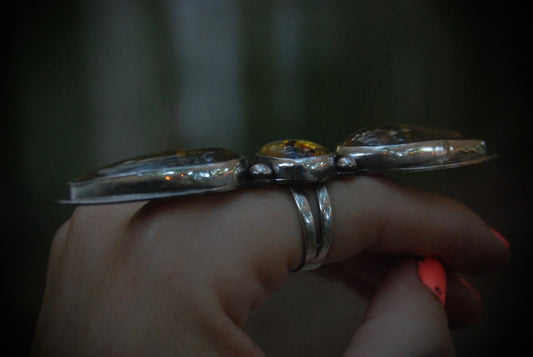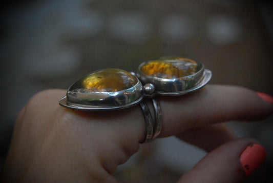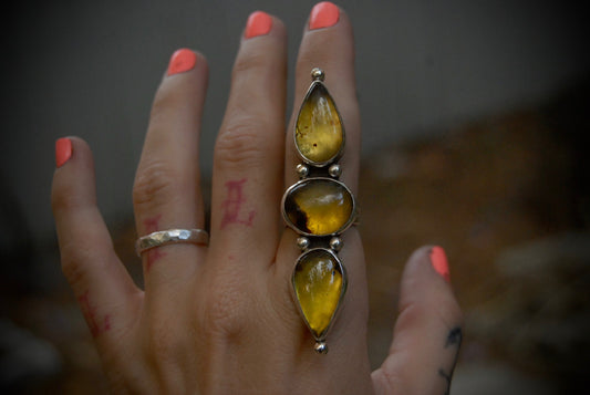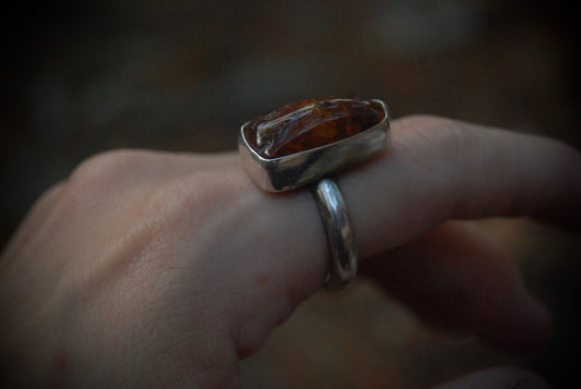 Unique Shaped Amber Nugget Ring SZ- 9