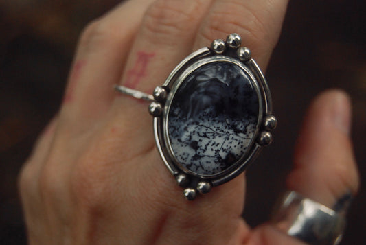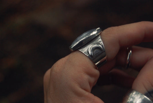 Sold outDendritic Moon Shield Ring sz-9.25