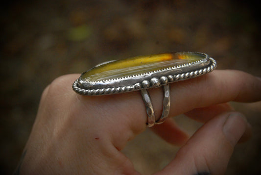 Sold outLong Amber Ring sz-7.25