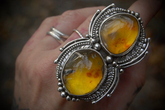 Sold outBeaded Amber Ring sz- 6.75