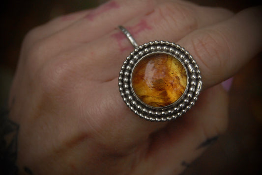 Sold outRound Amber Ring sz- 6