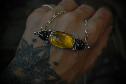 Velum Noctis is a gothic collection that dances on the edge between life and death — where silver bones and skulls meet the glow of amber and the darkness of onyx. Each piece embodies the beauty of decay and rebirth, a tribute to the eternal balance between shadow and light.