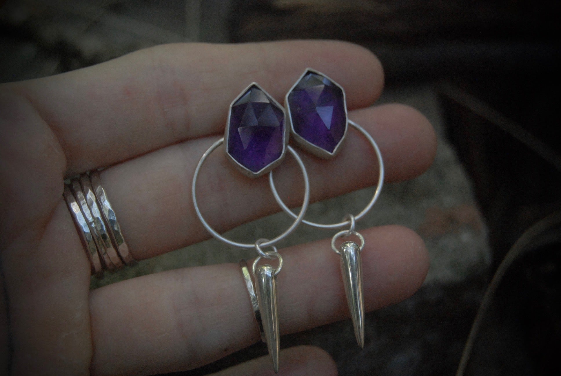 amethyst dagger earrings