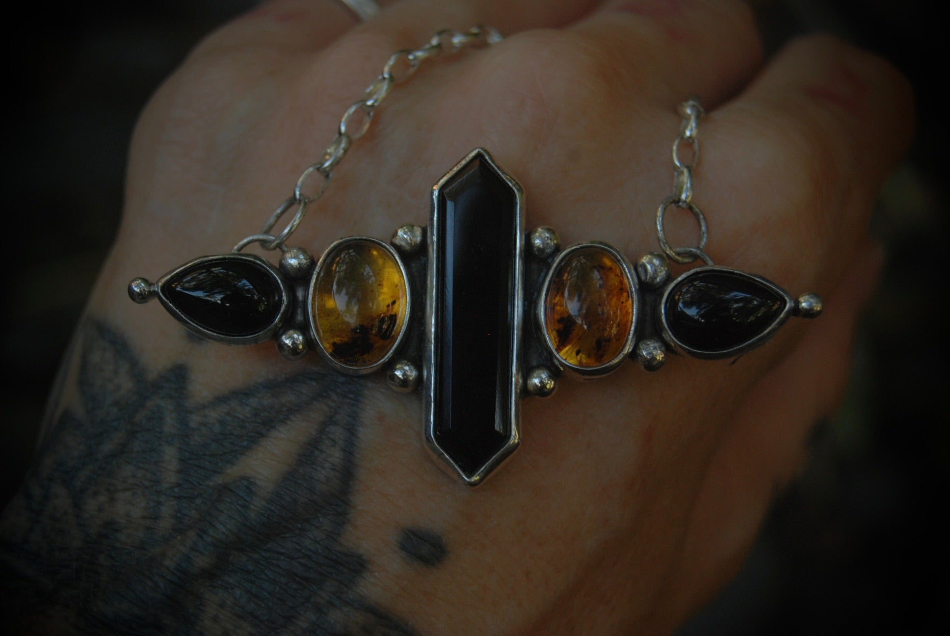 Amber | Onyx | Sterling silver