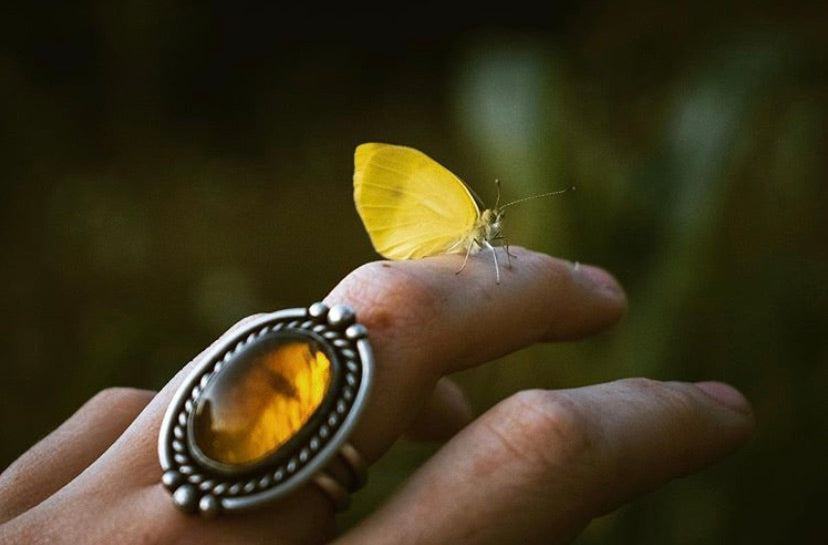 Amber and turquoise ring