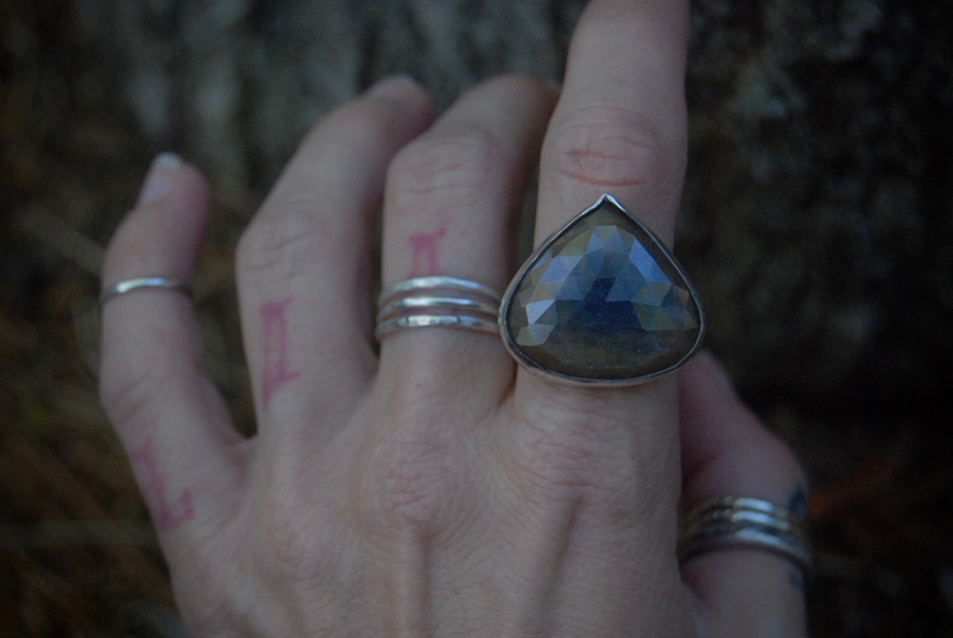 Oxidized to enhance details with a double half round hammered shank