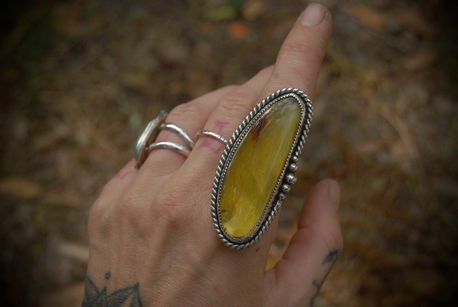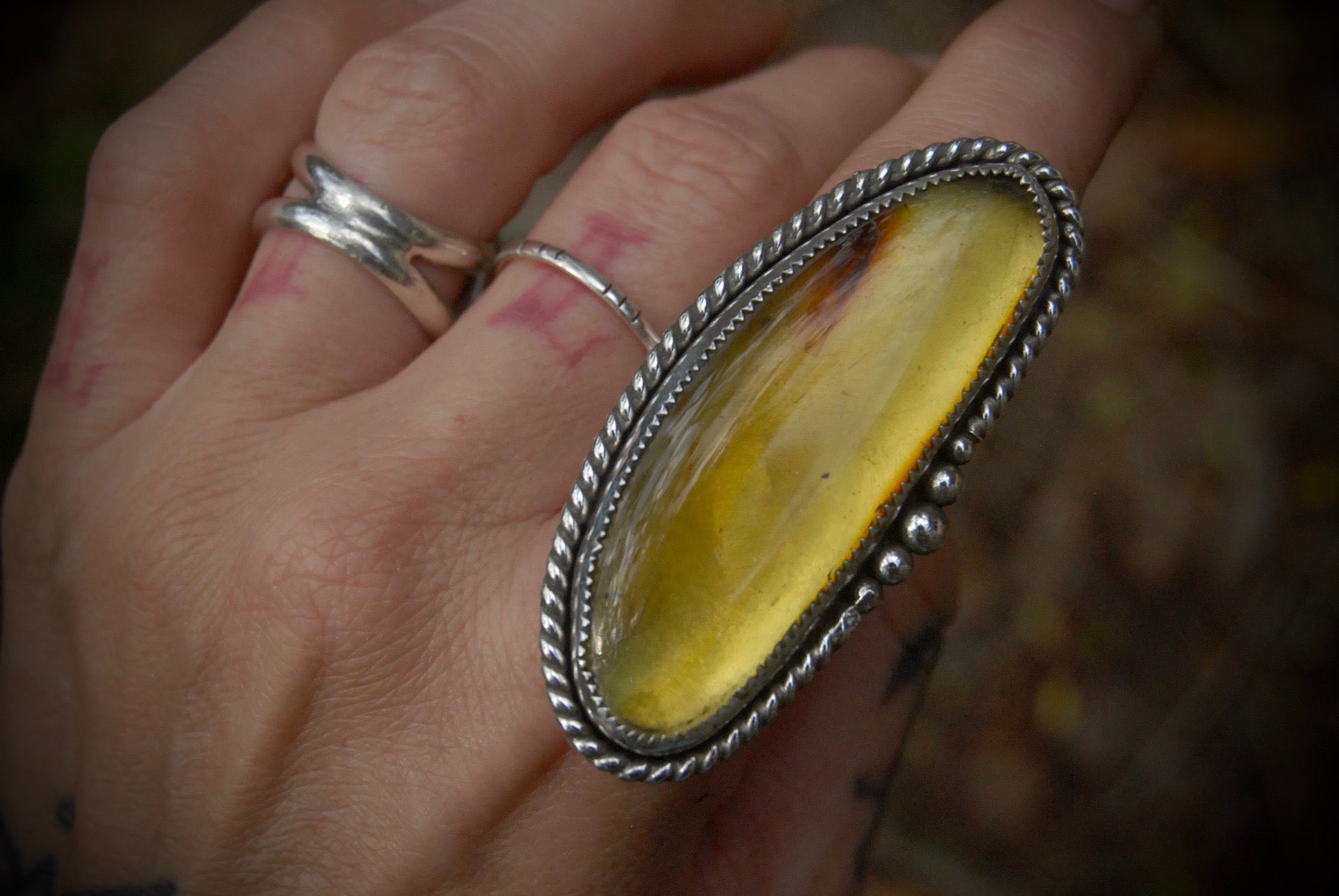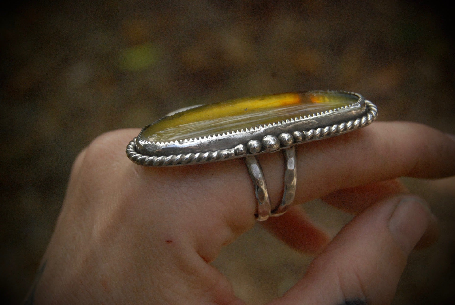 Long Amber Ring sz-7.25