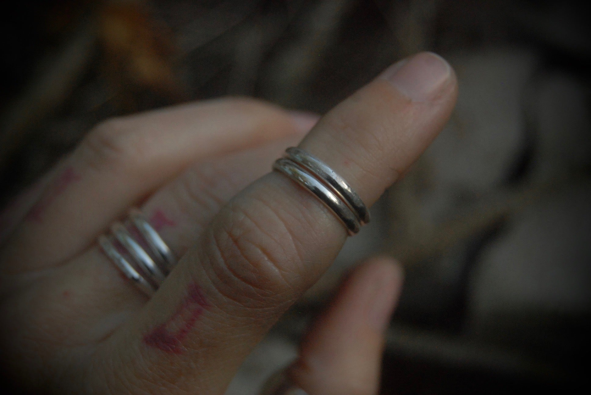 Two silver polished midi rings