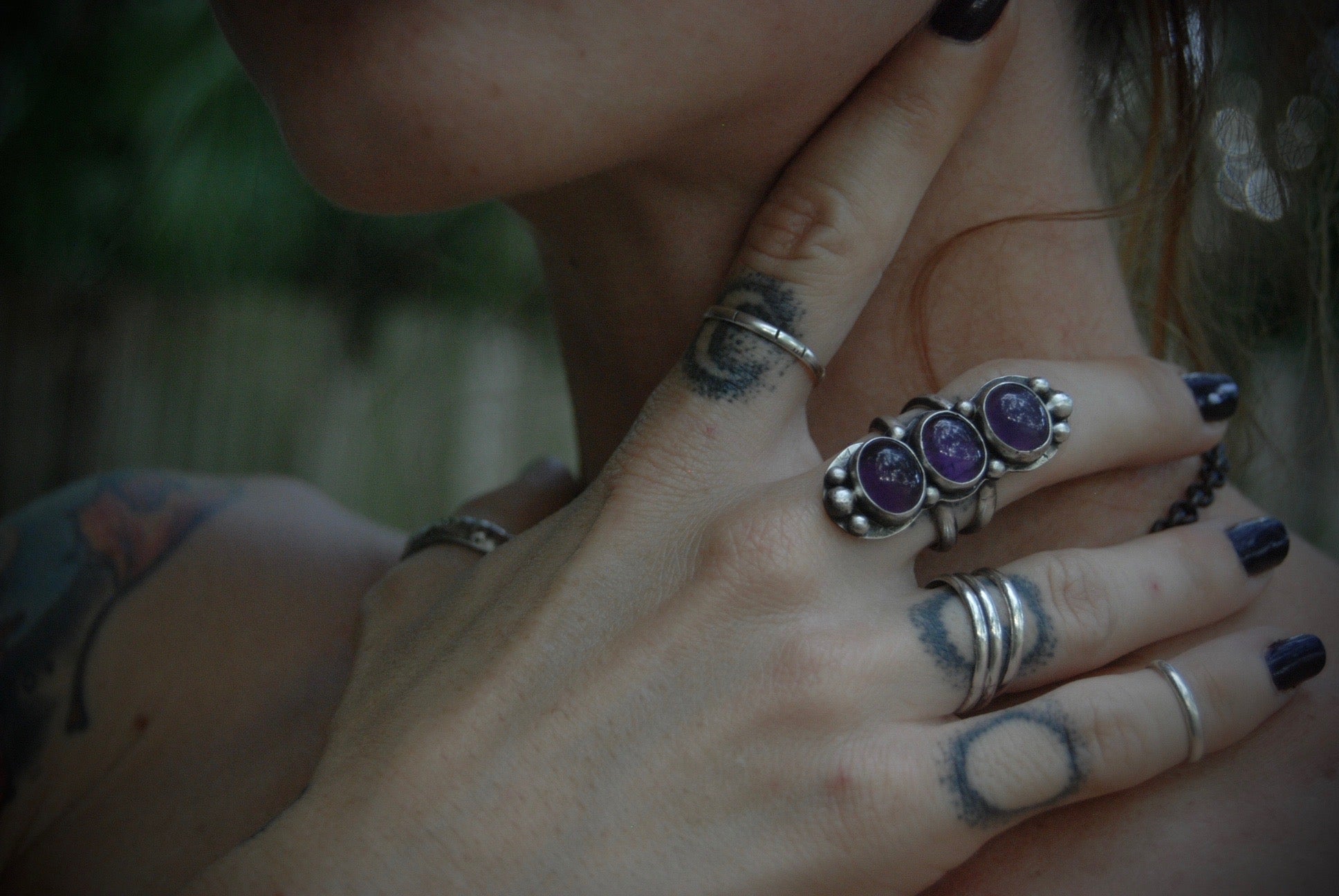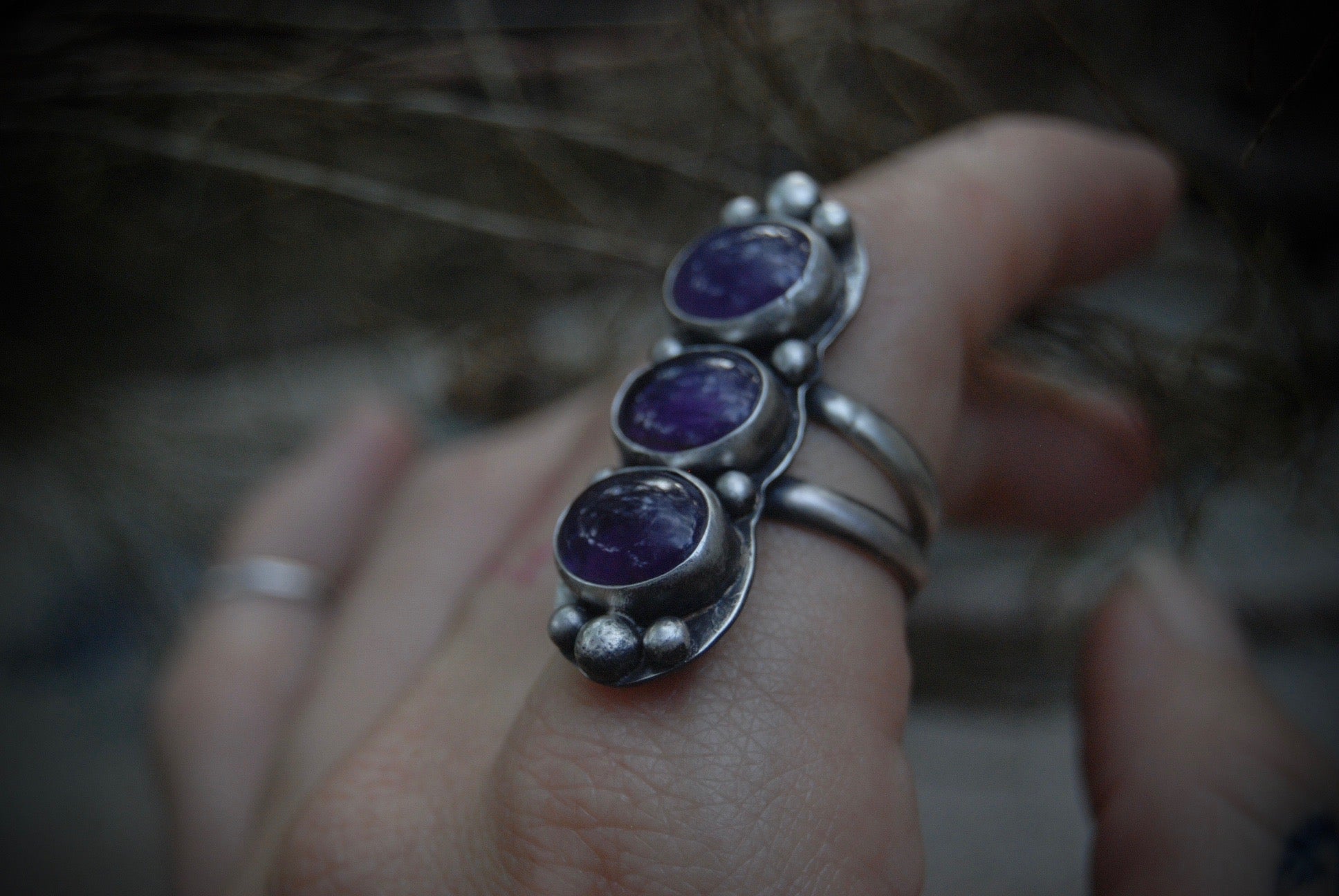 THE COVEN- Triple amethyst ring