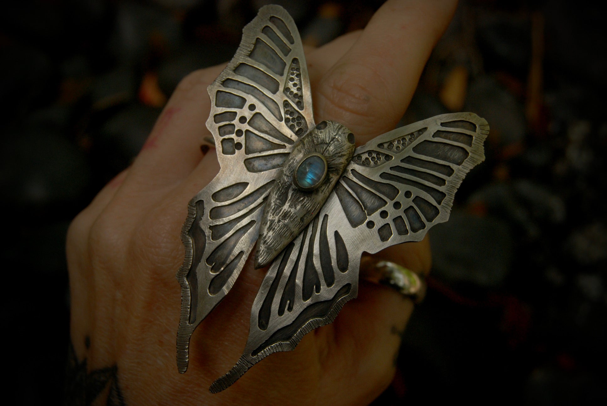 Oxidized to enhance details with a sating finish.